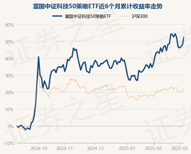 本站消息,3月6日,富国中证科技50策略ETF最新单位净值为1.5011元,累计净值为1.5011元,较前一交易日上涨3.02%。历史数据显示该基金近1个月上涨8.18%,近3个月上涨11.26%,近6个月上涨52.47%杠杆炒股口诀,近1年上涨31.57%。该基金近6个月的累计收益率走势如下图: