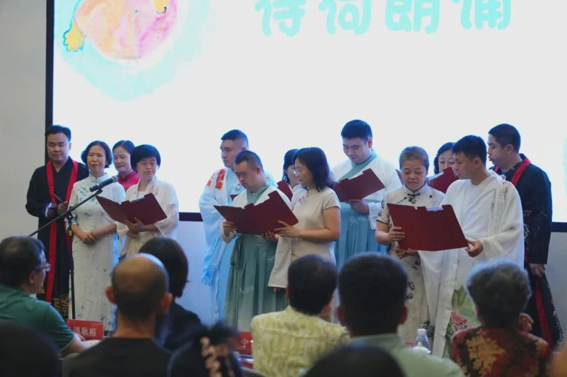 “听·海的声音”公益艺术展开幕式特殊艺术家进行诗朗诵